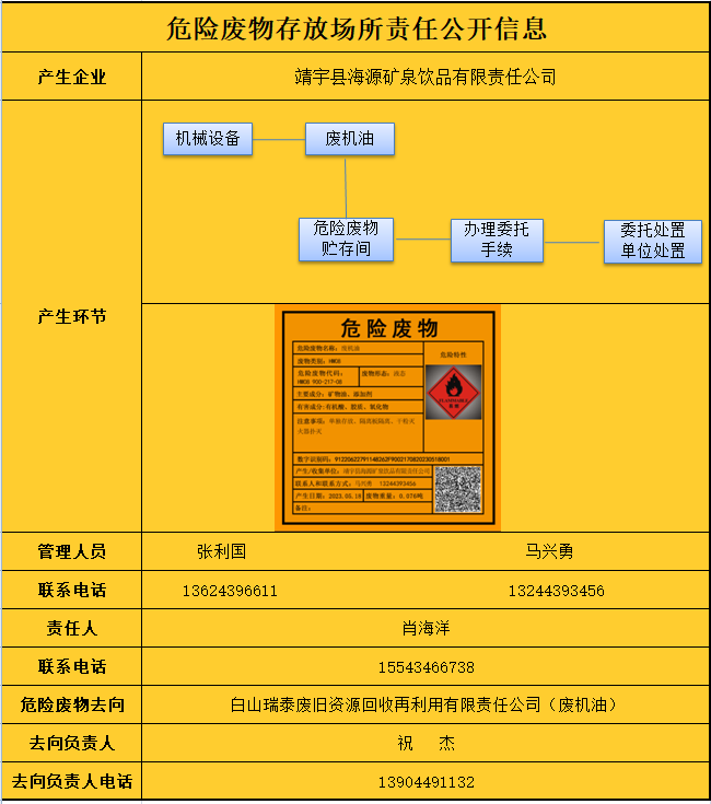 危險廢物存放場所責任公開信息